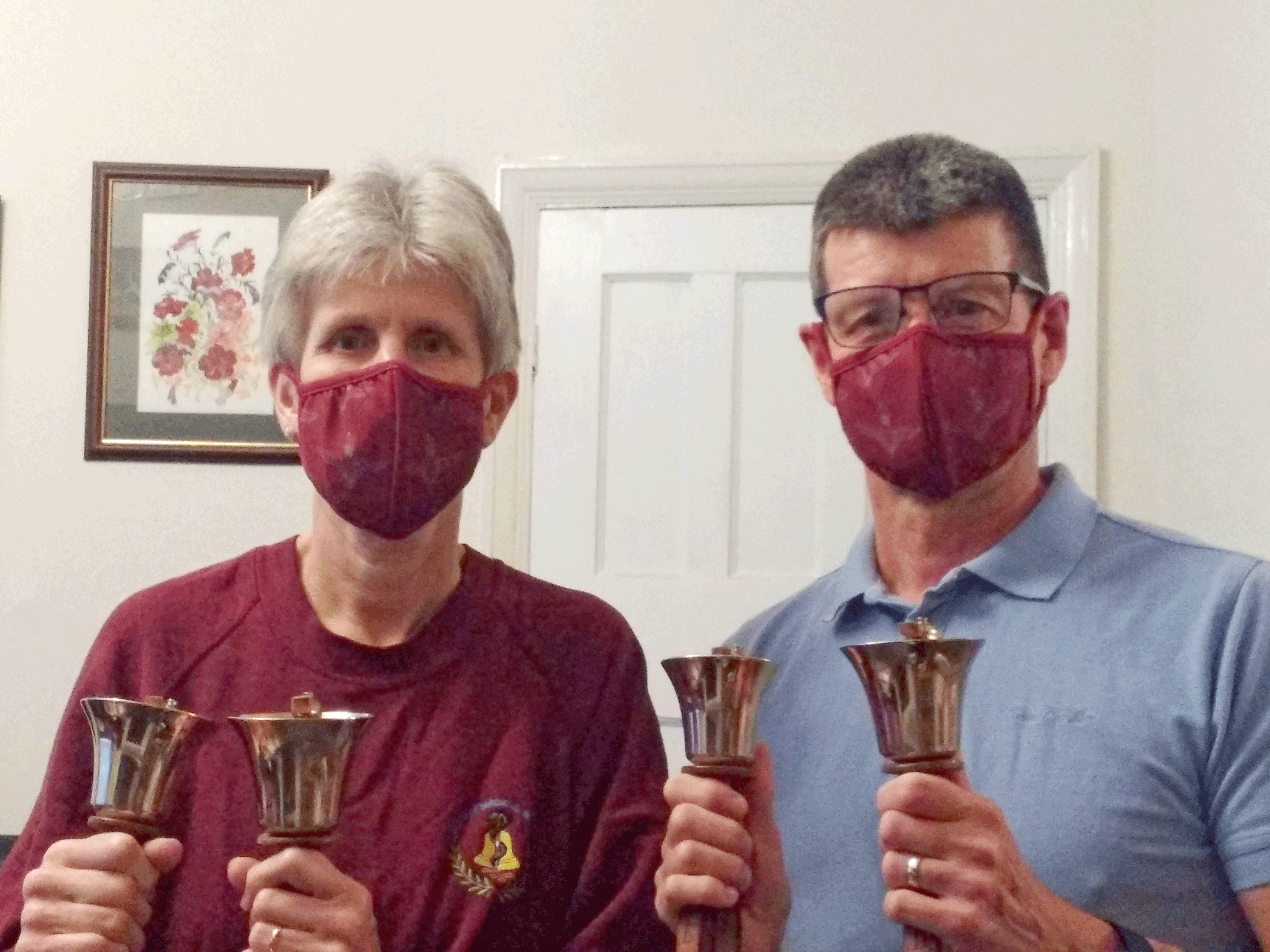 On Sunday 5th July 2020, the 72nd Anniversary of the National Health Service, Fiona and Martin Clode rang a handbell Peal of 5072 changes in eleven methods for the Guild. it took them One hour and 45 minutes and was rung at their home in Hendon, North London. Not only was this rung during the COVID 19 Pandemic, but it is also the first handbell peal and the first peal of minimus for the Guild. Full details of the peal are in the Peals and Quarter Peals section.