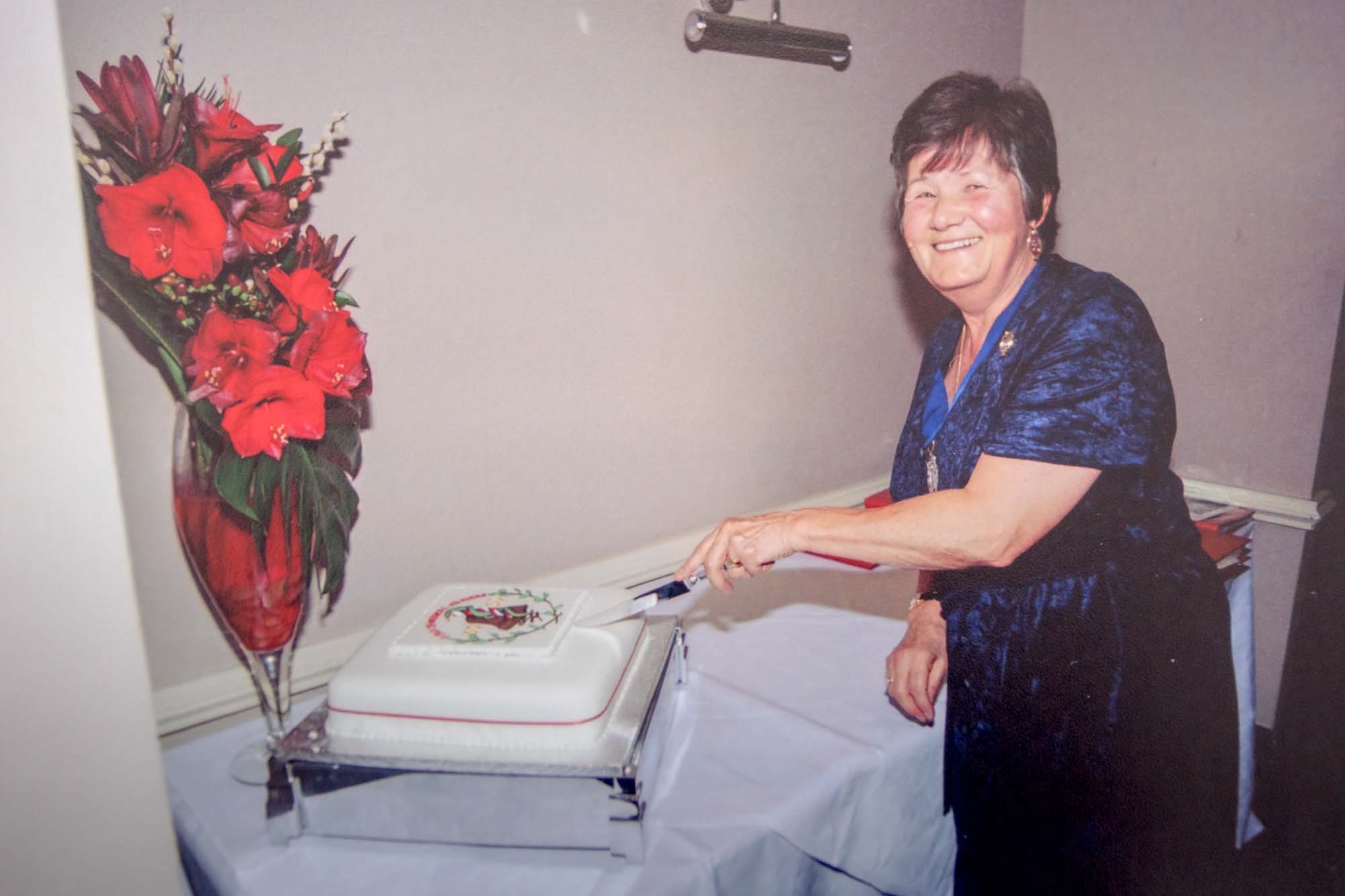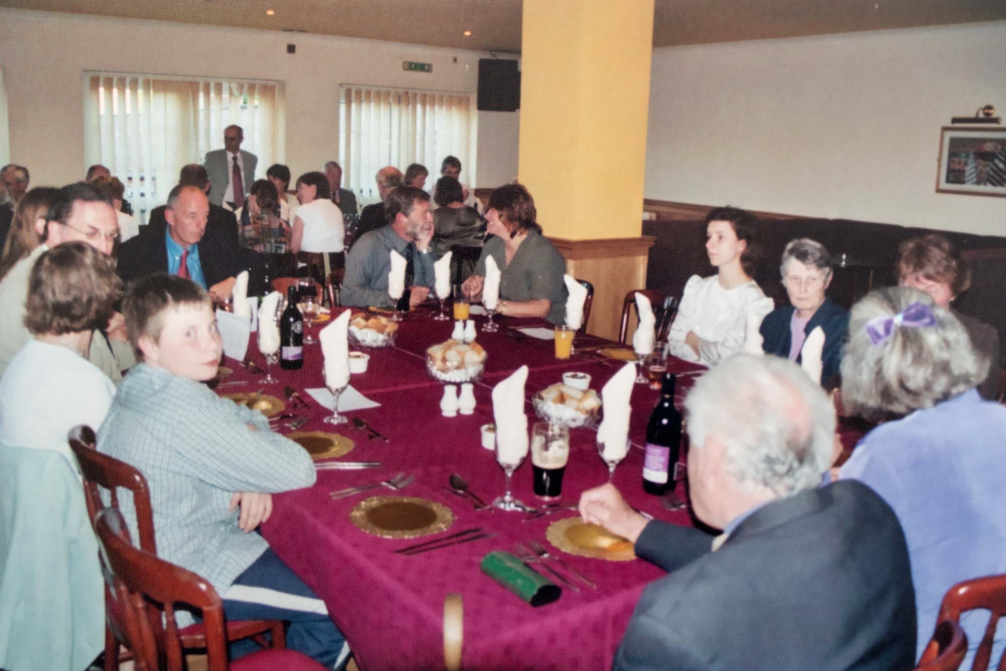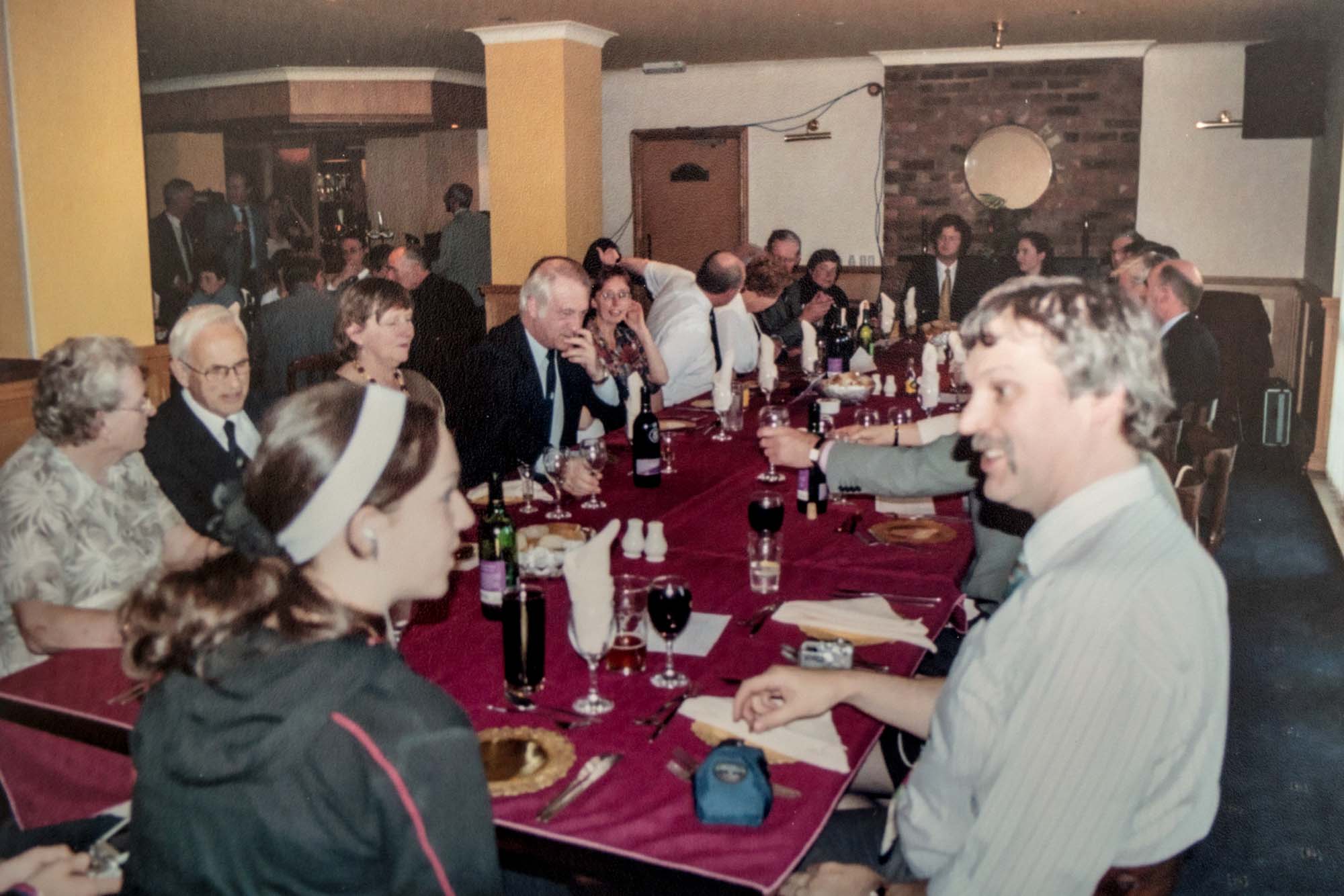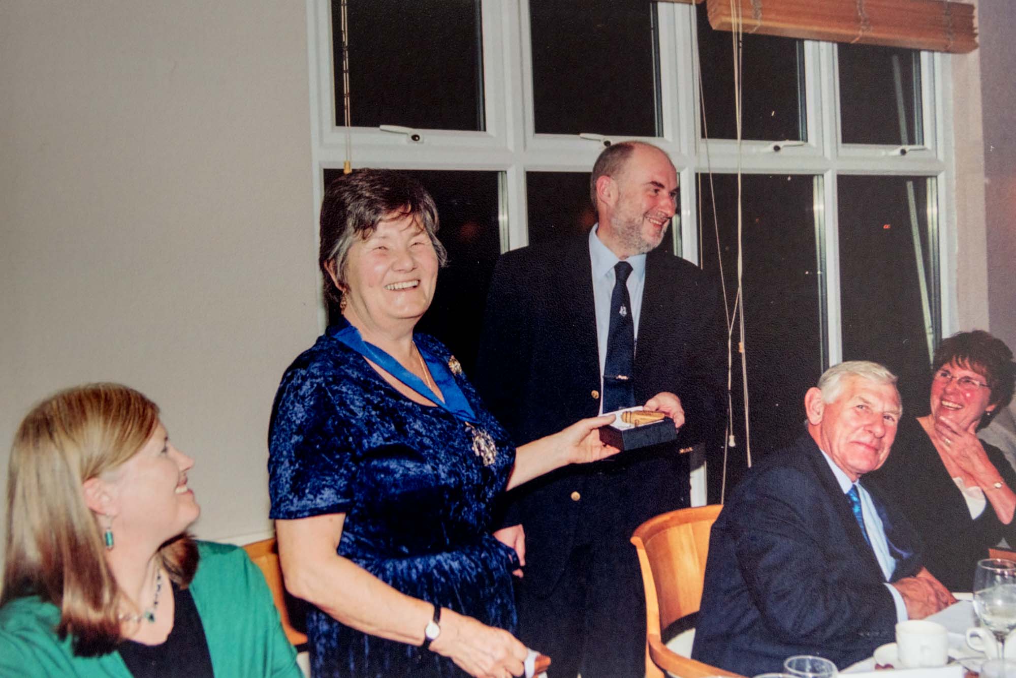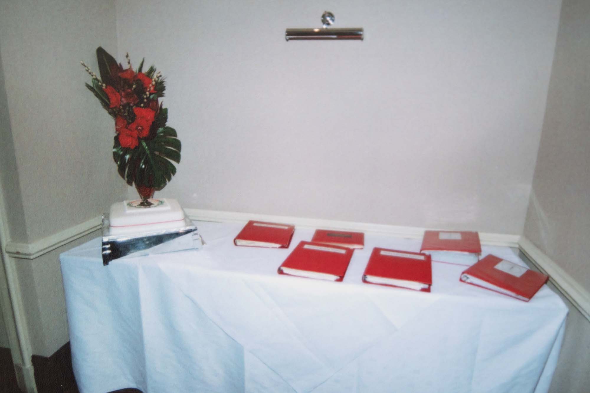 Dinner was held in the nearby Thames Lodge Hotel where we had booked the upper floor of the restaurant overlooking the Thames. Before dinner we had a chance for a drink in the bar, a group photograph and an opportunity to admire the Guild anniversary cake so beautifully made and iced by Wendy Lee and her sister Barbara. The restaurant coped admirably with our individually pre-ordered menu and fifty-nine of us, including four children, sat to the meal. As it was Guy Fawkes Night we were entertained by some stunning firework displays across the river and all at no extra cost!